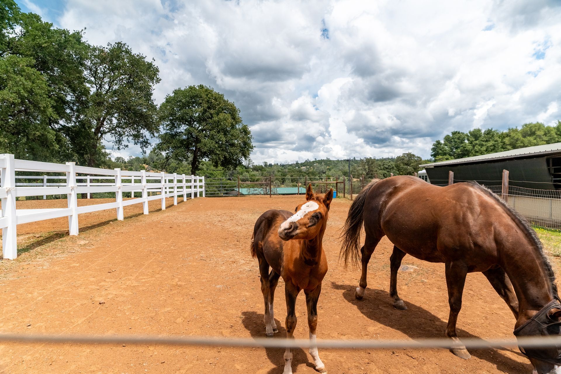 Welcome to a working ranch that perfectly balances purpose and peace—a rare opportunity to live, work, and thrive on 40 fully fenced, cross-fenced, and irrigated acres in the Sierra Foothills. (Adjacent 40-acre parcel with approx. 3,045 sq ft home (w attached in-law), large pond & hay barn/shop also available for sale.) Designed for serious equestrian and cattle operations, this exceptional estate offers the infrastructure and acreage needed to support breeding, training, and boarding at a professional level. Yet, beyond its world-class facilities, it’s the setting that truly sets it apart: open skies, wide pastures, and the everyday rhythm of ranch life, all in a Firewise community just 20-30 minutes from town.
