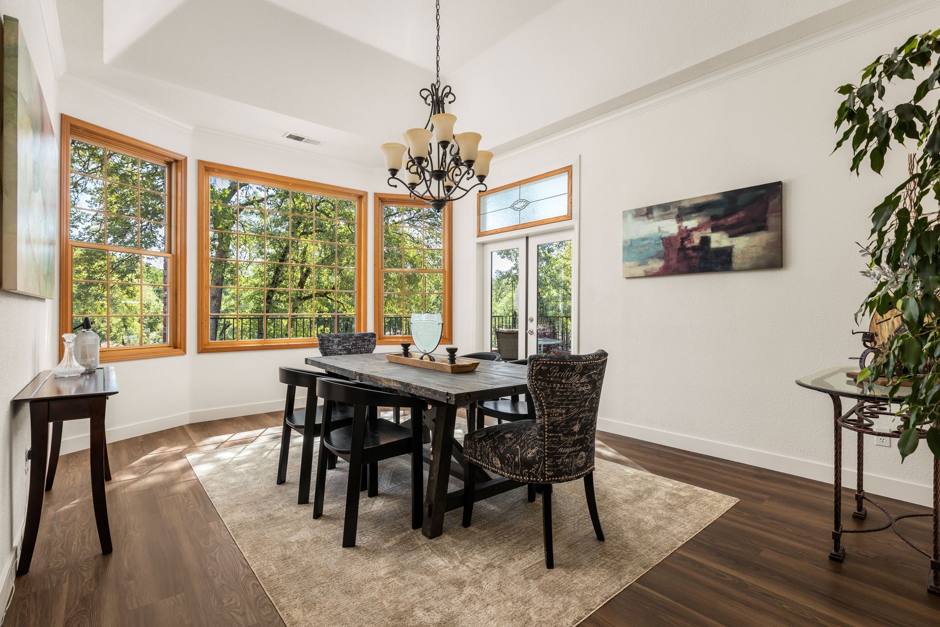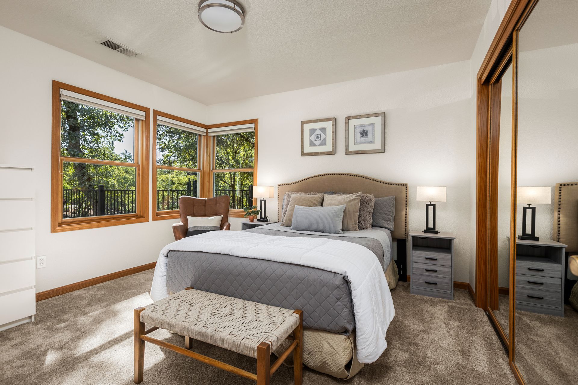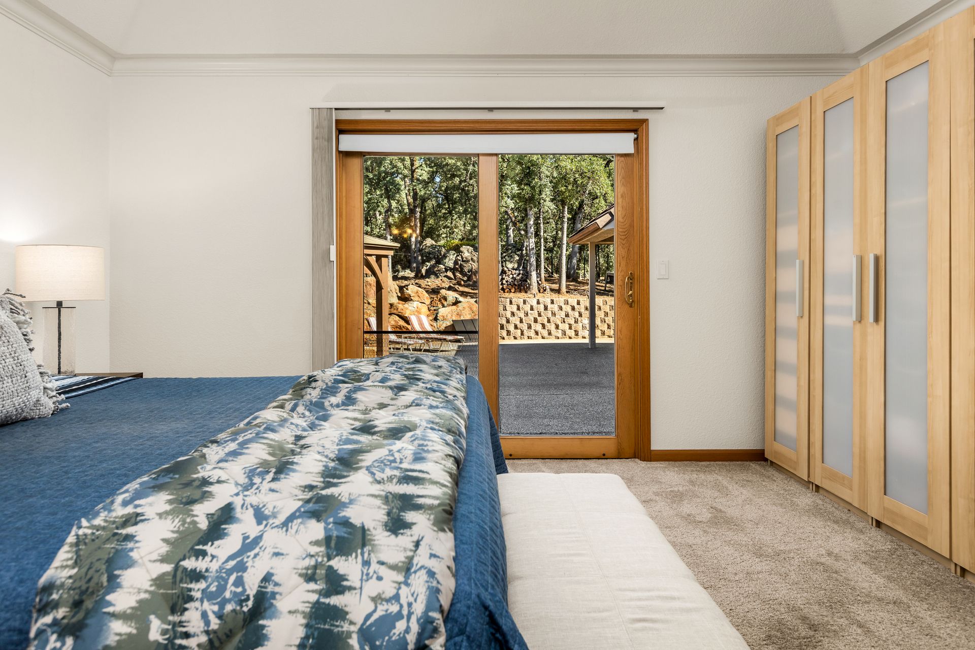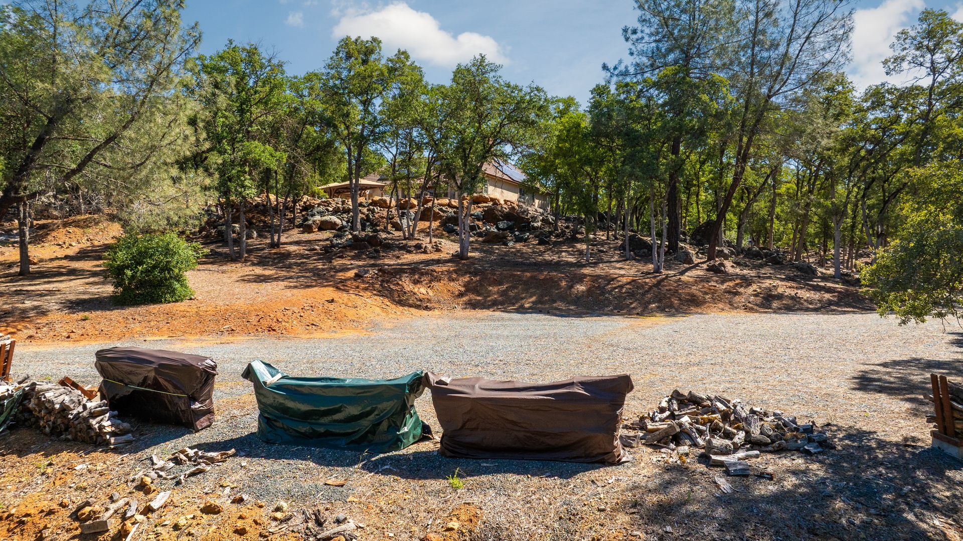 The private backyard retreat is designed for both relaxation and function with two gazebos, a deluxe 6-person Jacuzzi spa and an expansive concrete patio surrounded by natural rock outcroppings. The front deck with beautiful composite Trex decking provides for dining while viewing the trees located on the property. The oversized 3-car garage includes a floored attic with pull down aluminum stairs, 220V EV charging outlet, platform storage and a workbench. There is also a massive gravel pad providing RV storage or space to build a shop or ADU.
