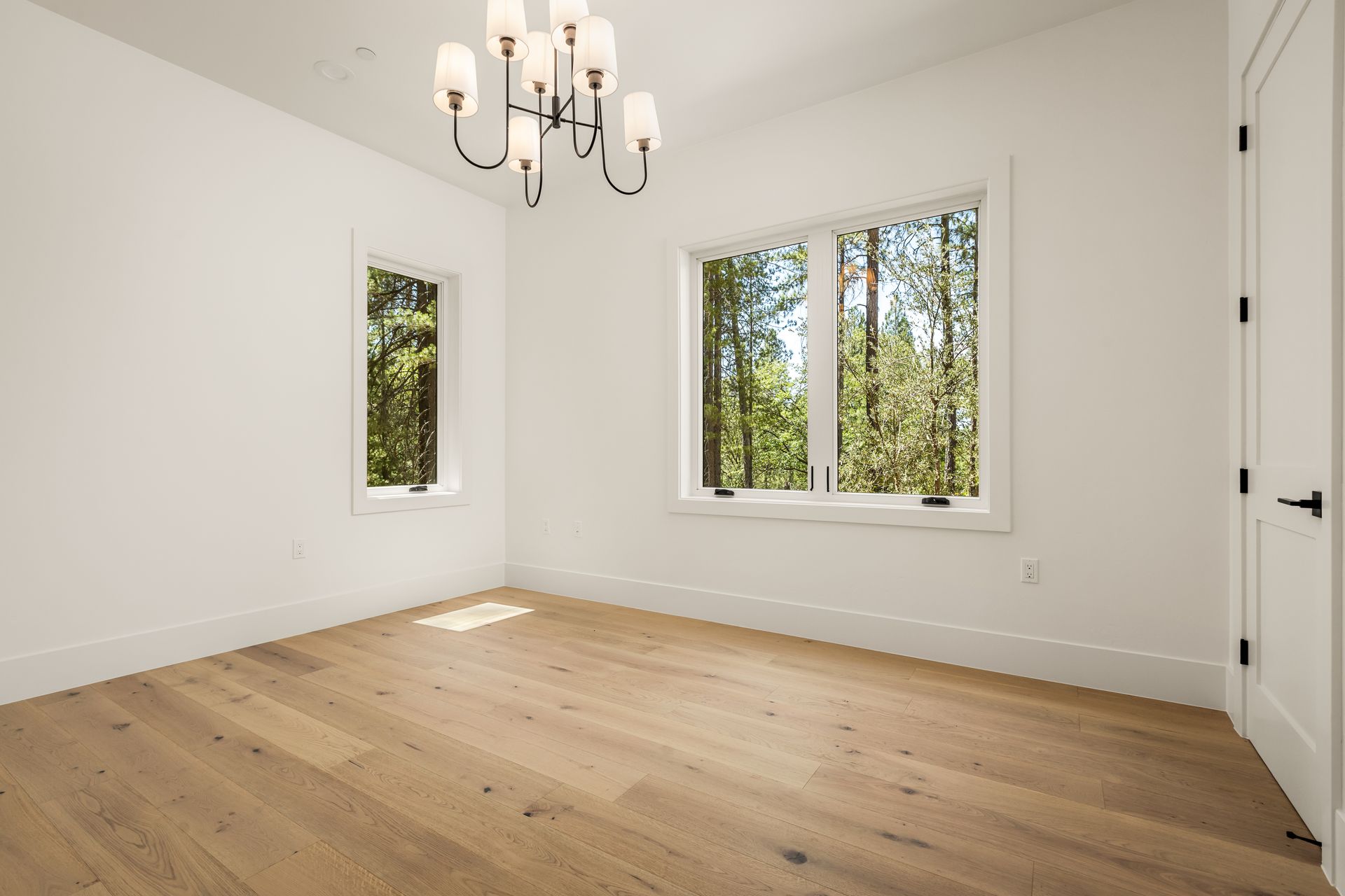 - Entire back of lot has been cleared and limbed, opening up views of the hills, sunset, tree tops and a distant lake & property backs up to greenspace for ultimate privacy