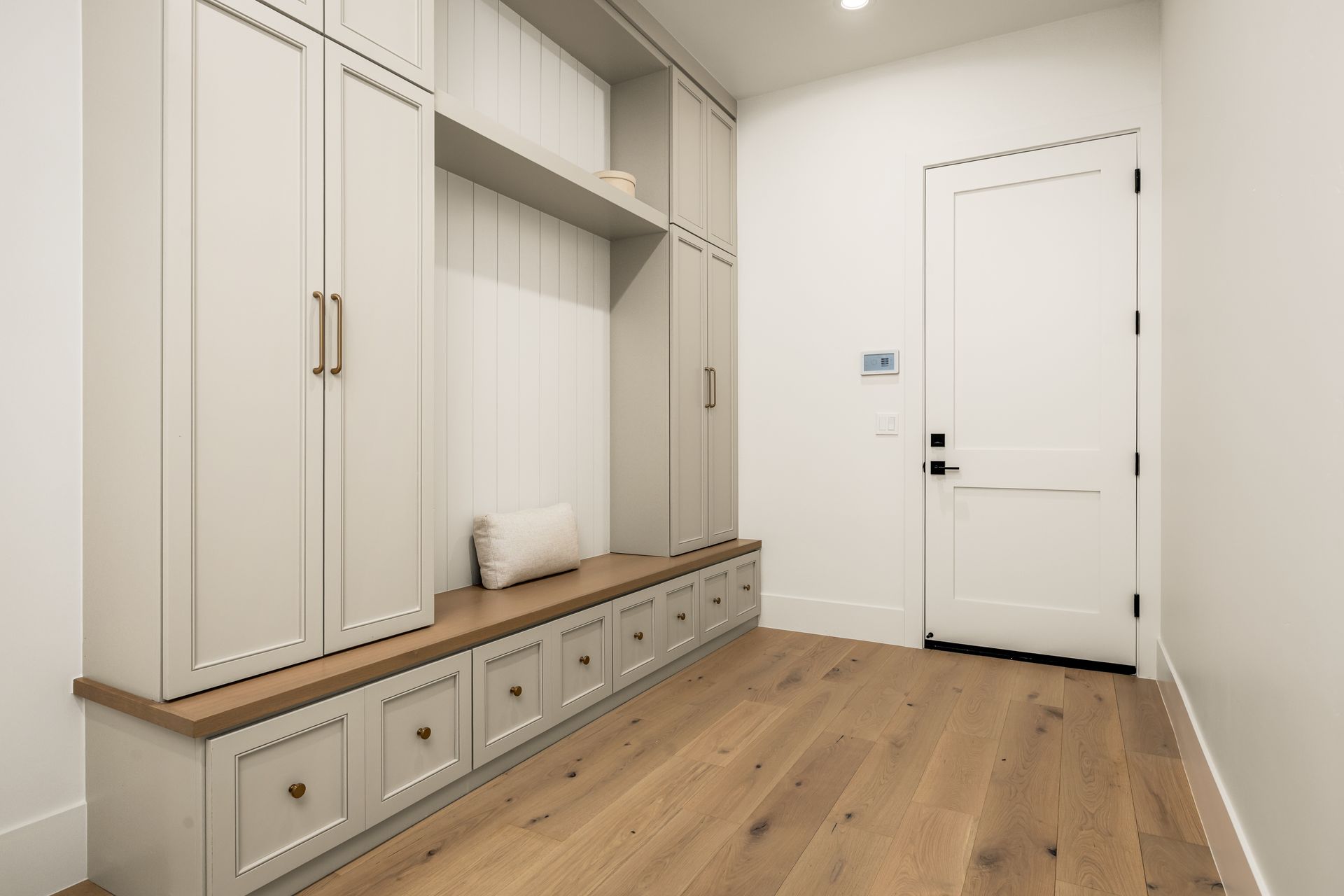 Mudroom with Built-In Bench, Cabinets, Vacuum Cabinet & Storage Drawers