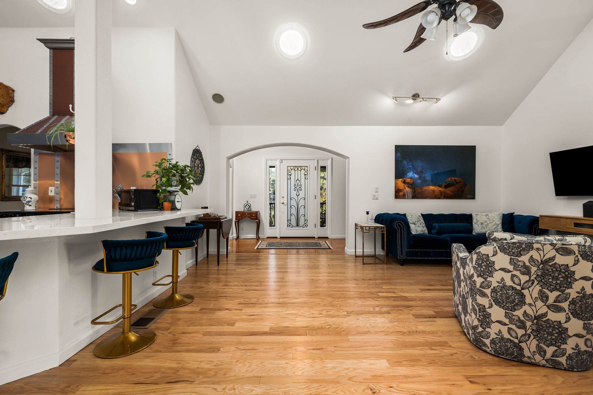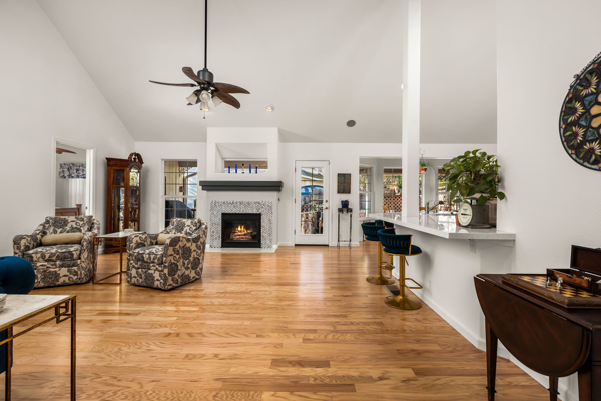Extensively remodeled in 2023, this single-story home is a perfect blend of comfort, modern convenience, and stylish design. Located outside of Lake Wildwood in the coveted Wildwood Ridge Estates this 3 bed/ 2 bath home features a great room concept with vaulted ceilings, newer Red Oak natural finish hardwood floors and a completely renovated kitchen and primary bathroom, refreshed secondary bath and ample parking - including for your RV! This home oozes charm with the marble tile fireplace, bronze kitchen backsplash and hood over the stove with matching pendent lighting.