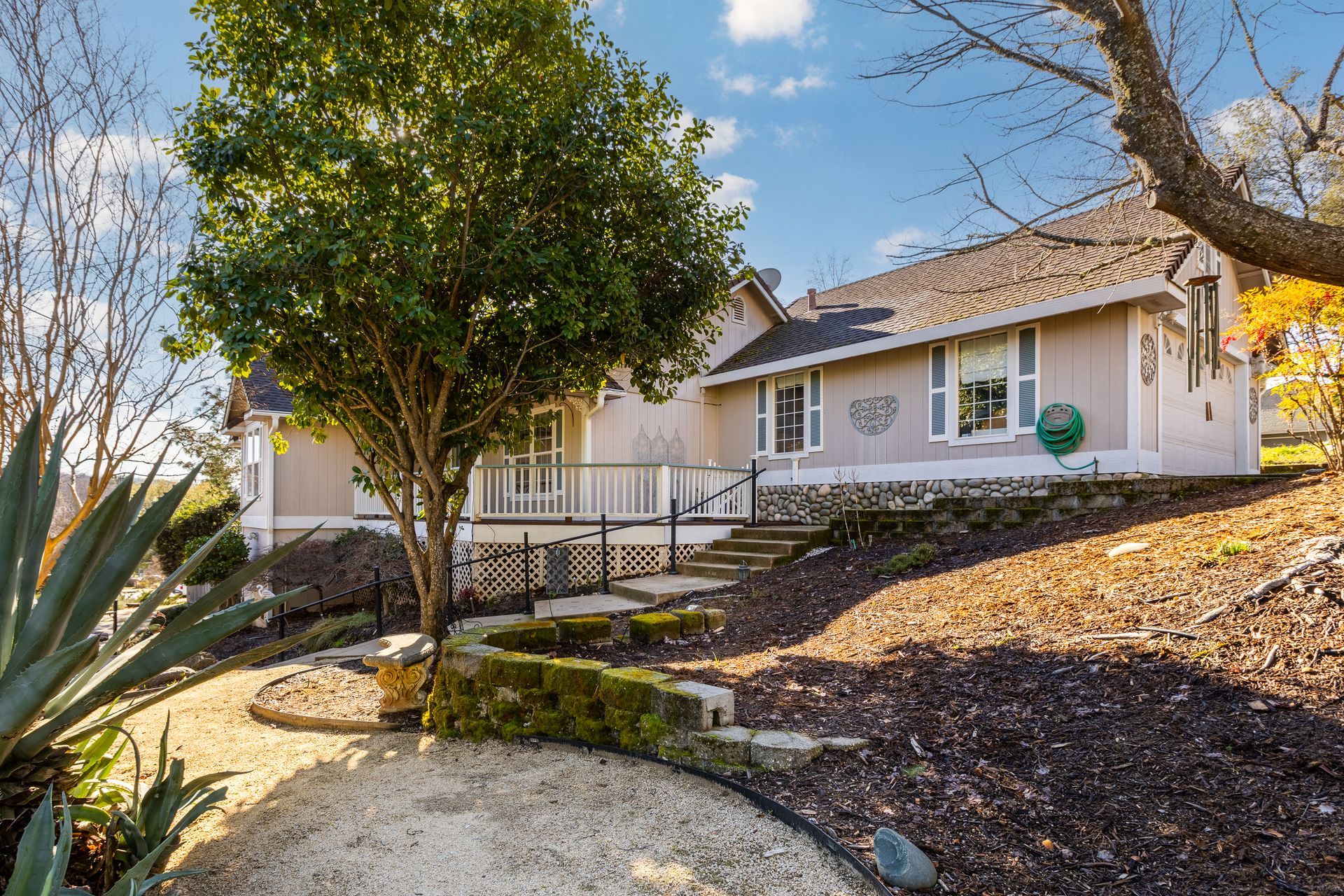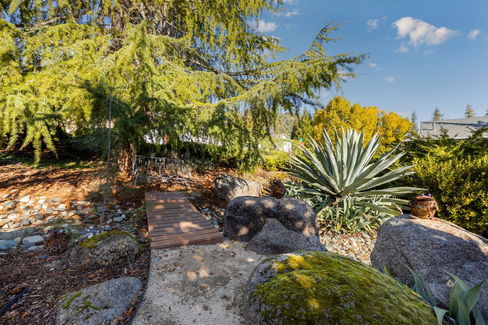 - Front Porch & Yard: New retractable screen door, hardy board siding with river rock accents, and a front gated porch with sitting space. Thoughtfully landscaped with an ornamental fire hydrant, water fountain, maple trees, agave plants and 2 picturesque bridges over dry river bed leading to a peaceful sitting area.