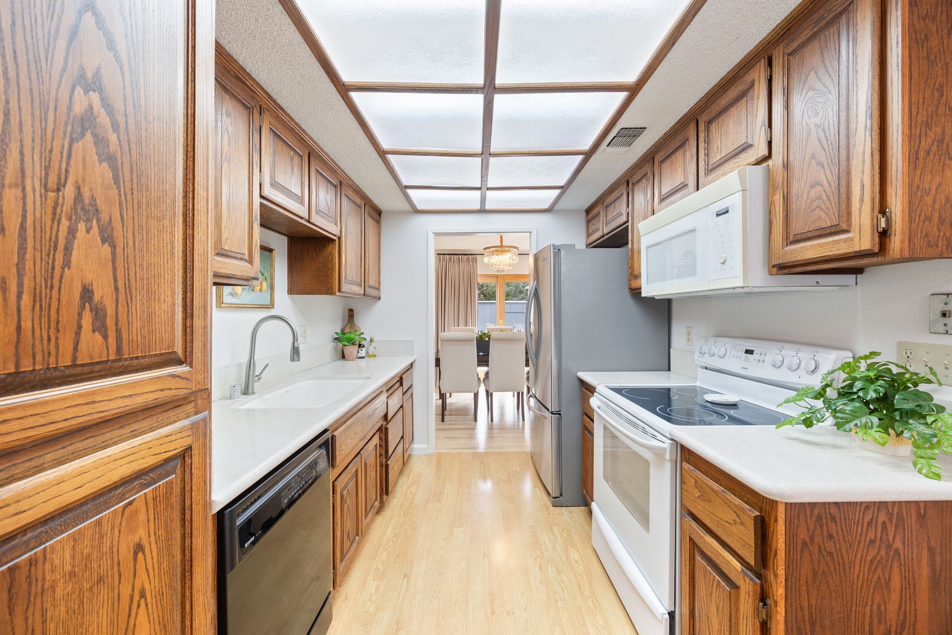 Situated in the desirable Royal Heights neighborhood, this end-unit townhouse adjacent to an open lawn offers a quiet retreat with a harmonious blend of comfort, elegance, and practicality. Upon arrival, a private gated courtyard with a patio welcomes you. The open-concept living and dining area showcases luxury vinyl flooring, a fireplace, a wet bar, and sliding wood-cased doors that lead to the large back patio. The kitchen features a breakfast nook with direct access to the front courtyard. Also on the main floor is a bedroom and full bathroom.