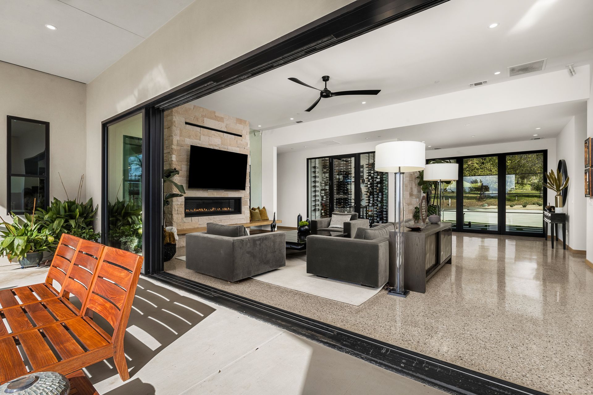 - WeatherTech 23’ retractable glass wall, seamlessly connecting indoor and outdoor living spaces with no threshold