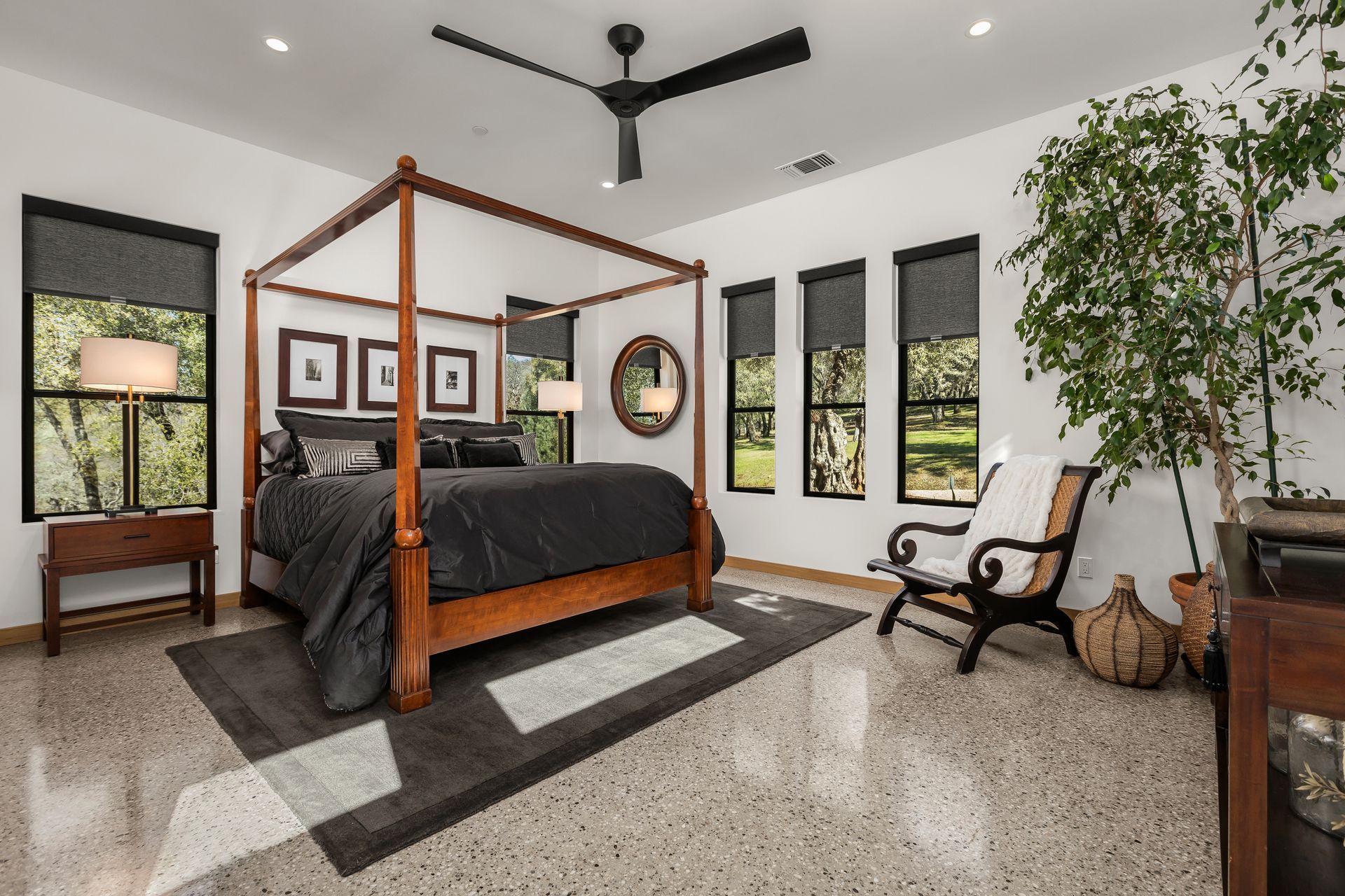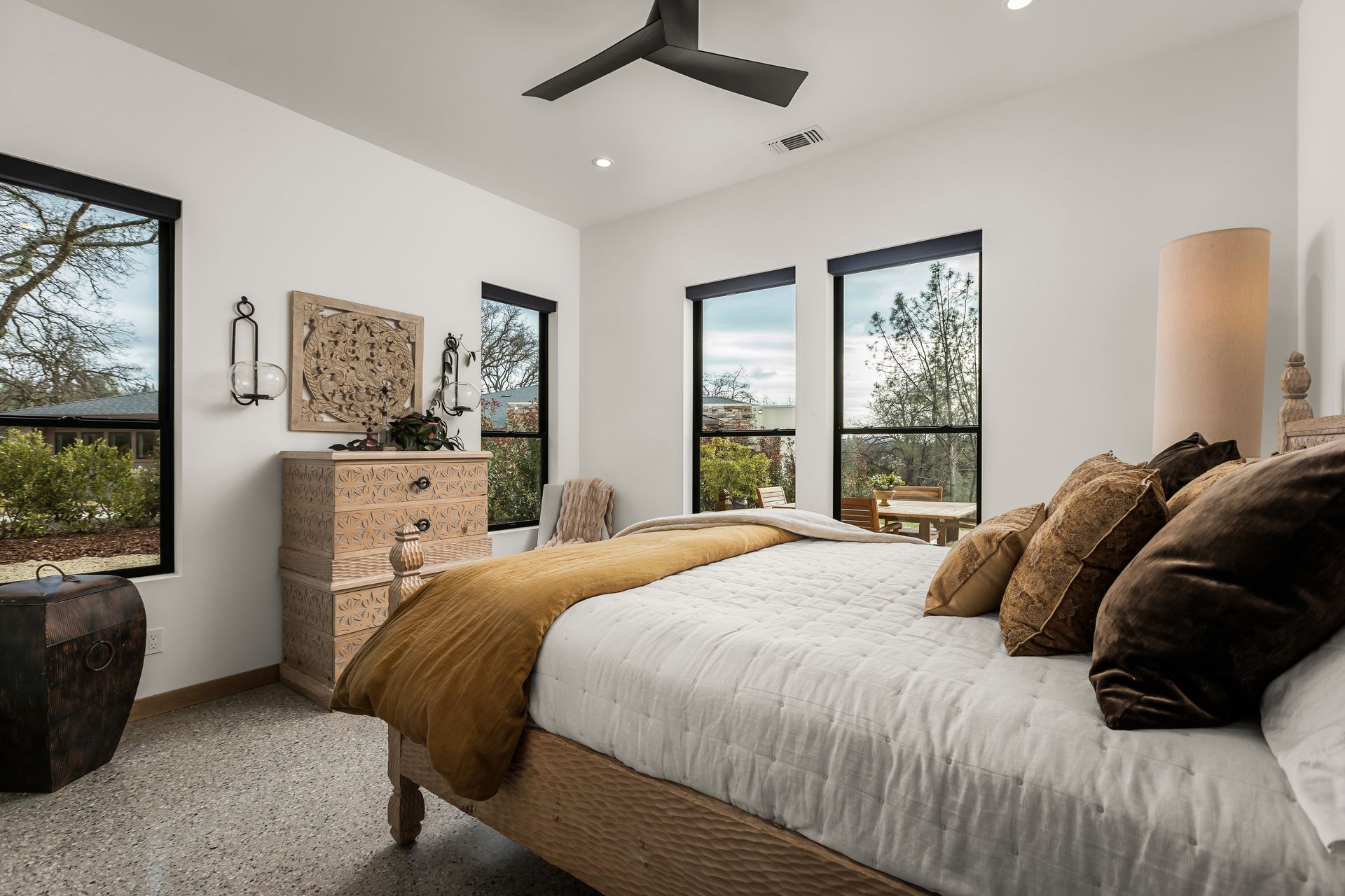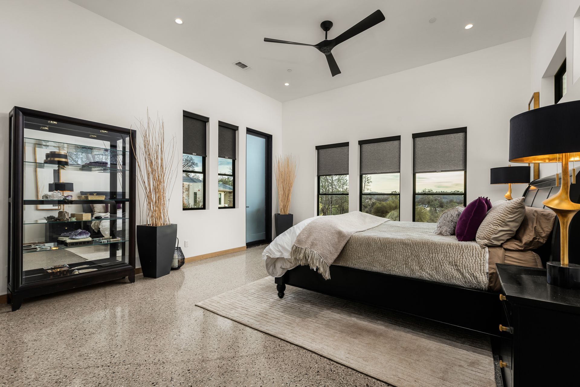 Experience unparalleled luxury in this custom-built contemporary masterpiece, perfectly positioned to capture stunning sunset views over Lake of the Pines and Darkhorse Golf Course. Thoughtfully designed with high-end natural finishes and energy efficiency in mind, this single-story home offers seamless indoor-outdoor living, a state-of-the-art kitchen, and a private wine cellar—all set on a 1.25-acre lot—prepped for a future infinity pool, spa, outdoor kitchen, fireplace and vineyard!