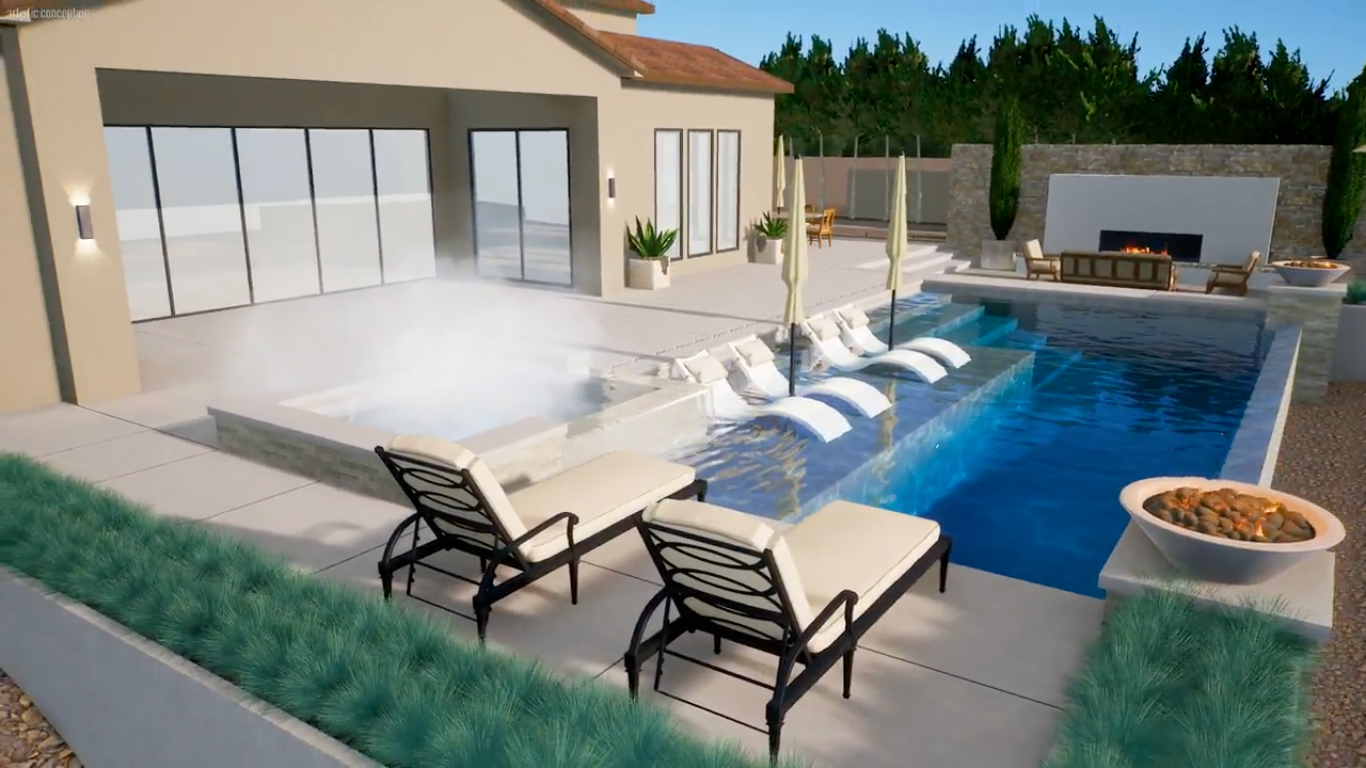- Plans completed for an infinity-edge pool, spa, and outdoor kitchen and fireplace; gas pre plumbed