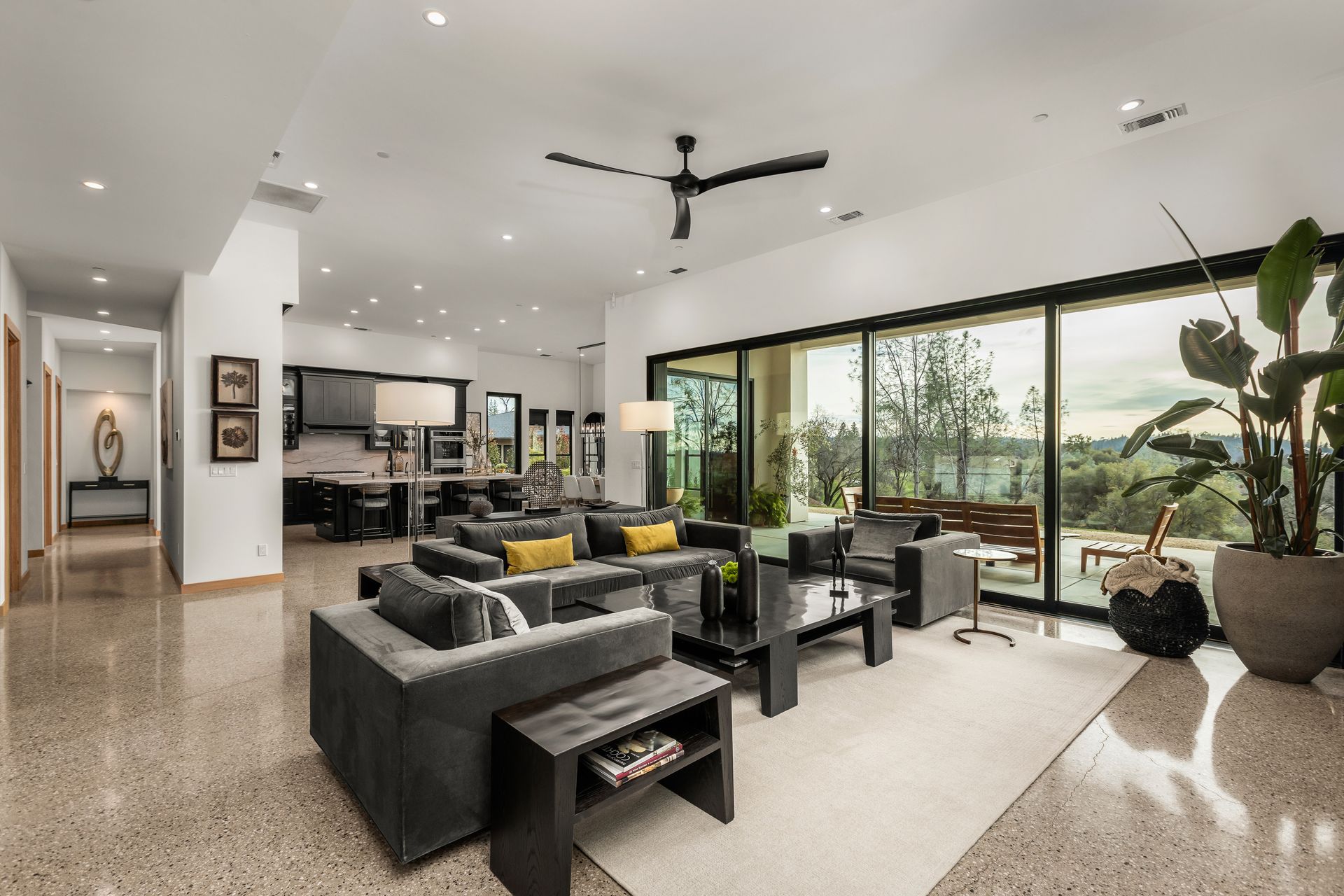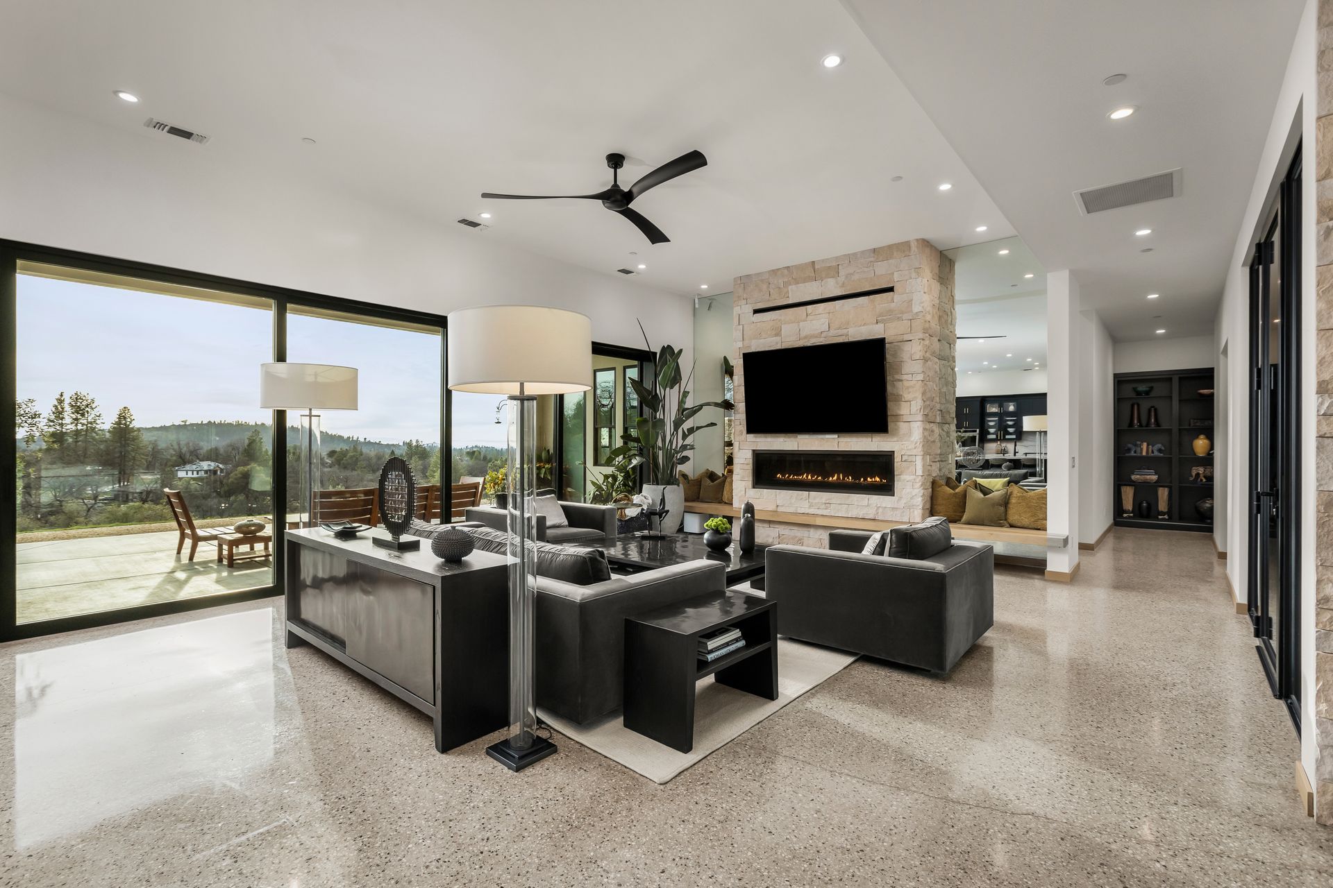 Experience unparalleled luxury in this custom-built contemporary masterpiece, perfectly positioned to capture stunning sunset views over Lake of the Pines and Darkhorse Golf Course. Thoughtfully designed with high-end natural finishes and energy efficiency in mind, this single-story home offers seamless indoor-outdoor living, a state-of-the-art kitchen, and a private wine cellar—all set on a 1.25-acre lot—prepped for a future infinity pool, spa, outdoor kitchen, fireplace and vineyard!