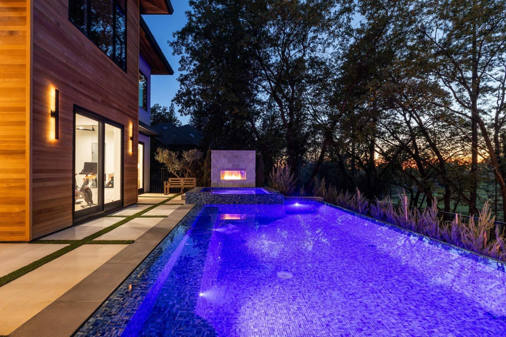 Beautiful natural light floods this home through the custom entry store front window, the custom stairwell floor-to-ceiling windows and door, plus the abundant Sierra Pacific windows and doors. In addition, there is a built-in sauna, office with built-ins, an extra-large family/game room with a second beverage refrigerator and wet bar, 2 sound systems, built-in BBQ, 3 amazing fireplaces, oversized garages for 5 cars with epoxy flooring, owned solar and so much more.