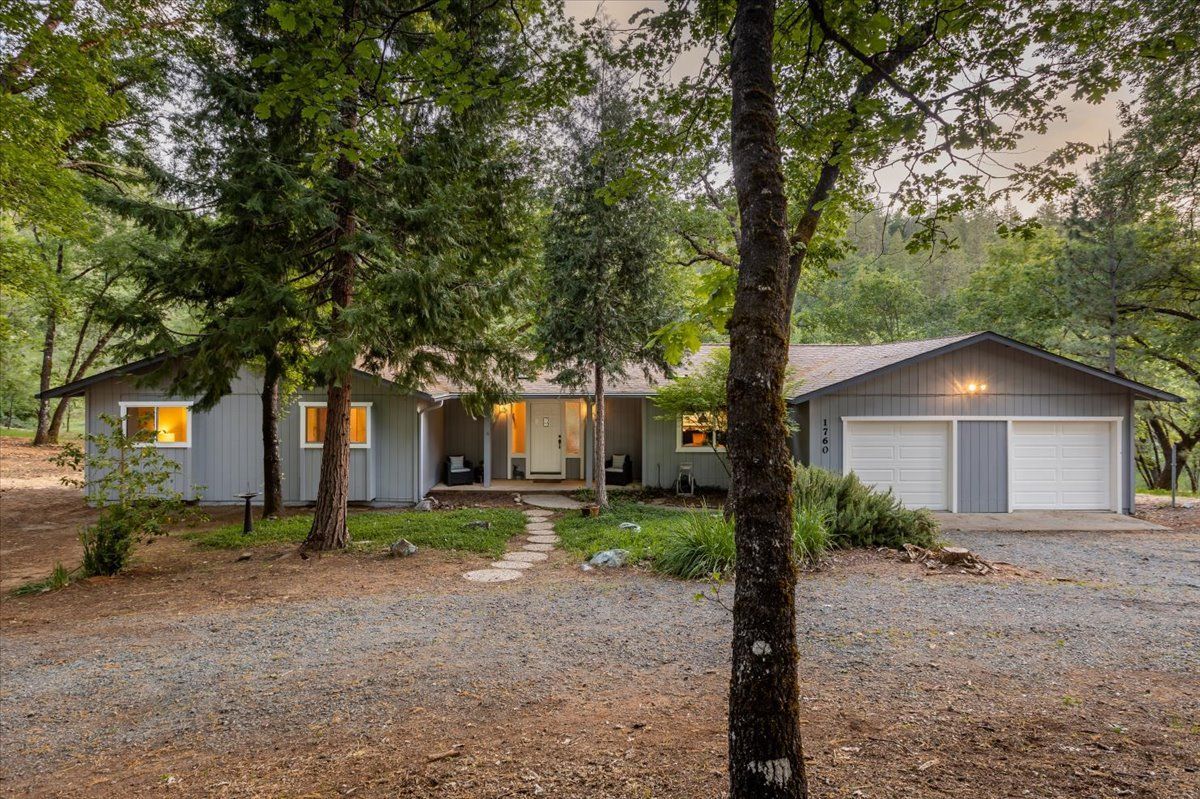 The kitchen includes the refrigerator and offers a dine up bar and a dining area with a new modern pendant light. On the opposite side of the home is the hall bath, two generous sized bedrooms and the master suite, which overlooks the backyard and beautiful hillside. The 2 car oversized garage has a laundry area w/ washer & dryer that can stay. There is also plenty of RV parking & a storage shed for wood or to fence and convert for your animals. This sweet home is ready for its second owner!