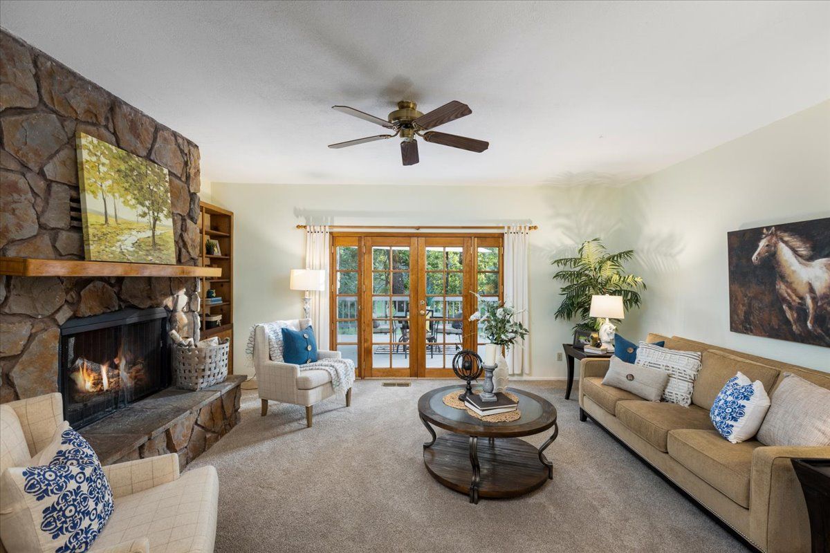 This home features a step down family room with a raised hearth fireplace, built in bookcases and French doors to the backyard and a large newer deck. There are no neighbors behind this home and the property has been recently cleared, offering space for animals and a garden!