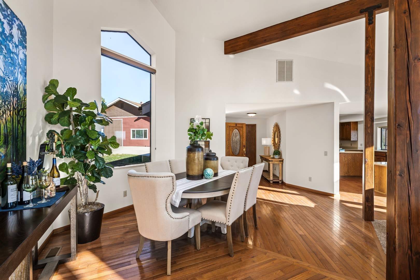 The formal dining area shares this space along with the large kitchen; with a center island, abundant cabinetry and newer appliances.