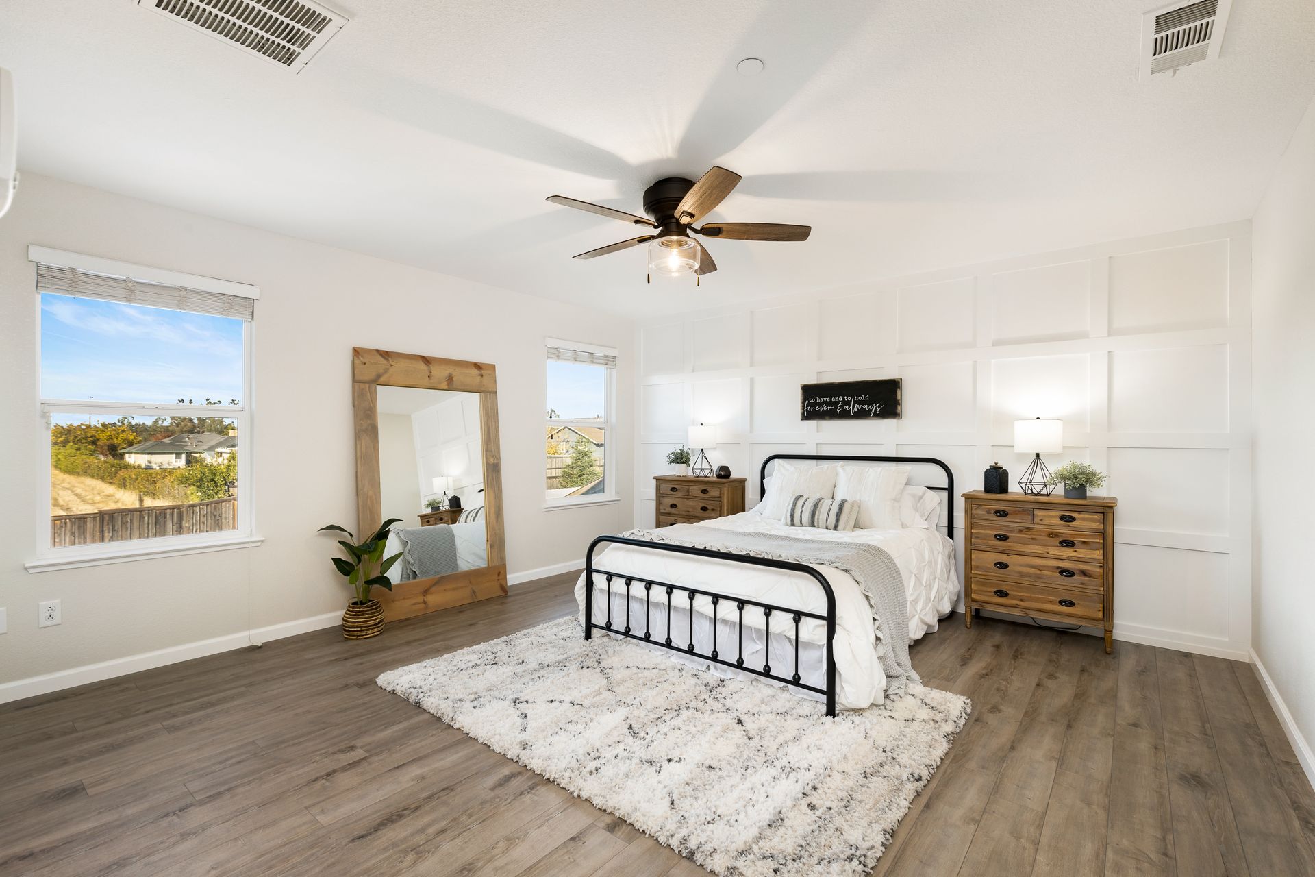 *Double lot sized backyard with cement framed lawn and a spacious patio with patio cover and two new ceiling fans with lights