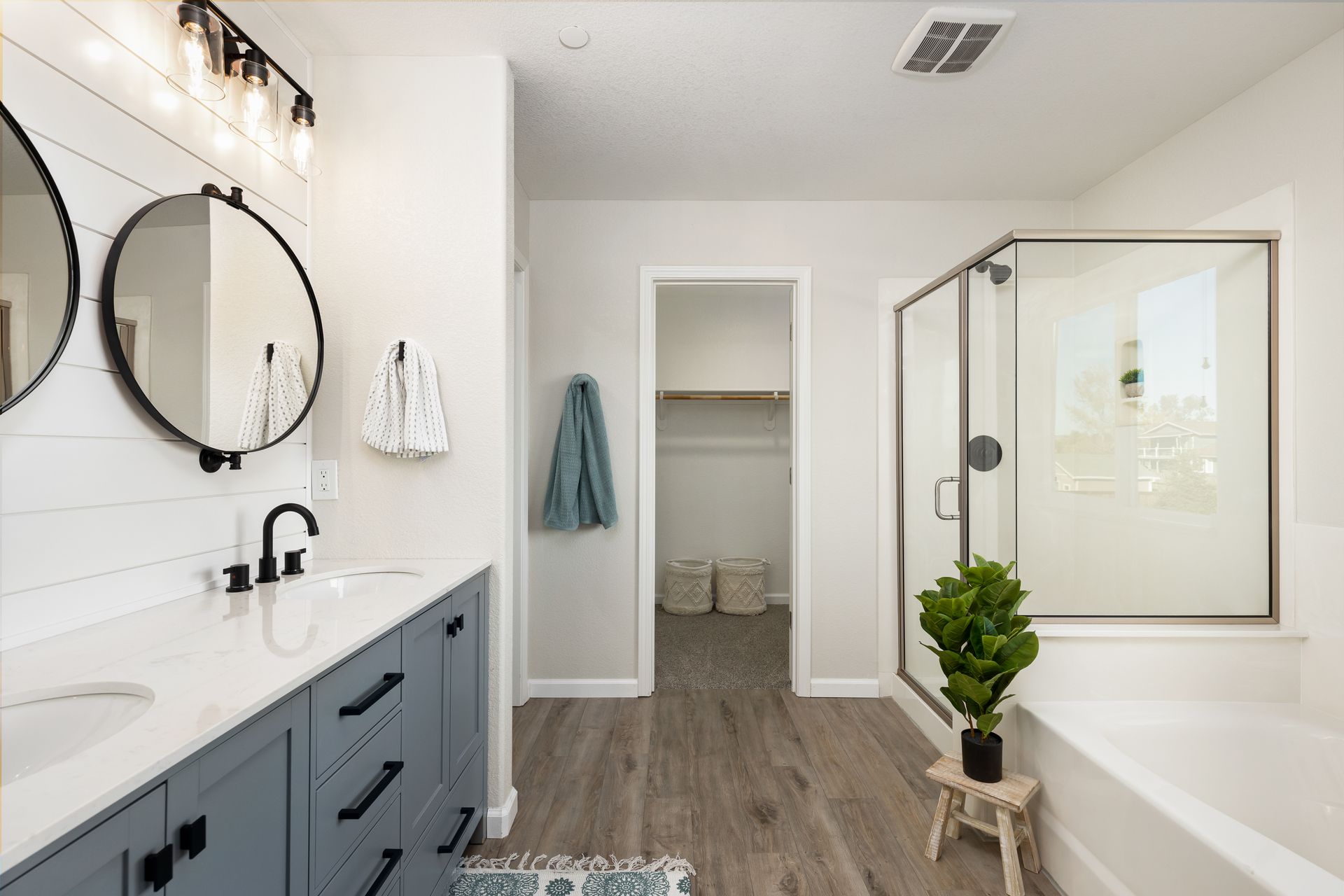 *Remodeled 3 bathrooms with new floors, quartz vanities with soft close cabinets, sinks, faucets, mirrors, shower heads, lighting and towel bars