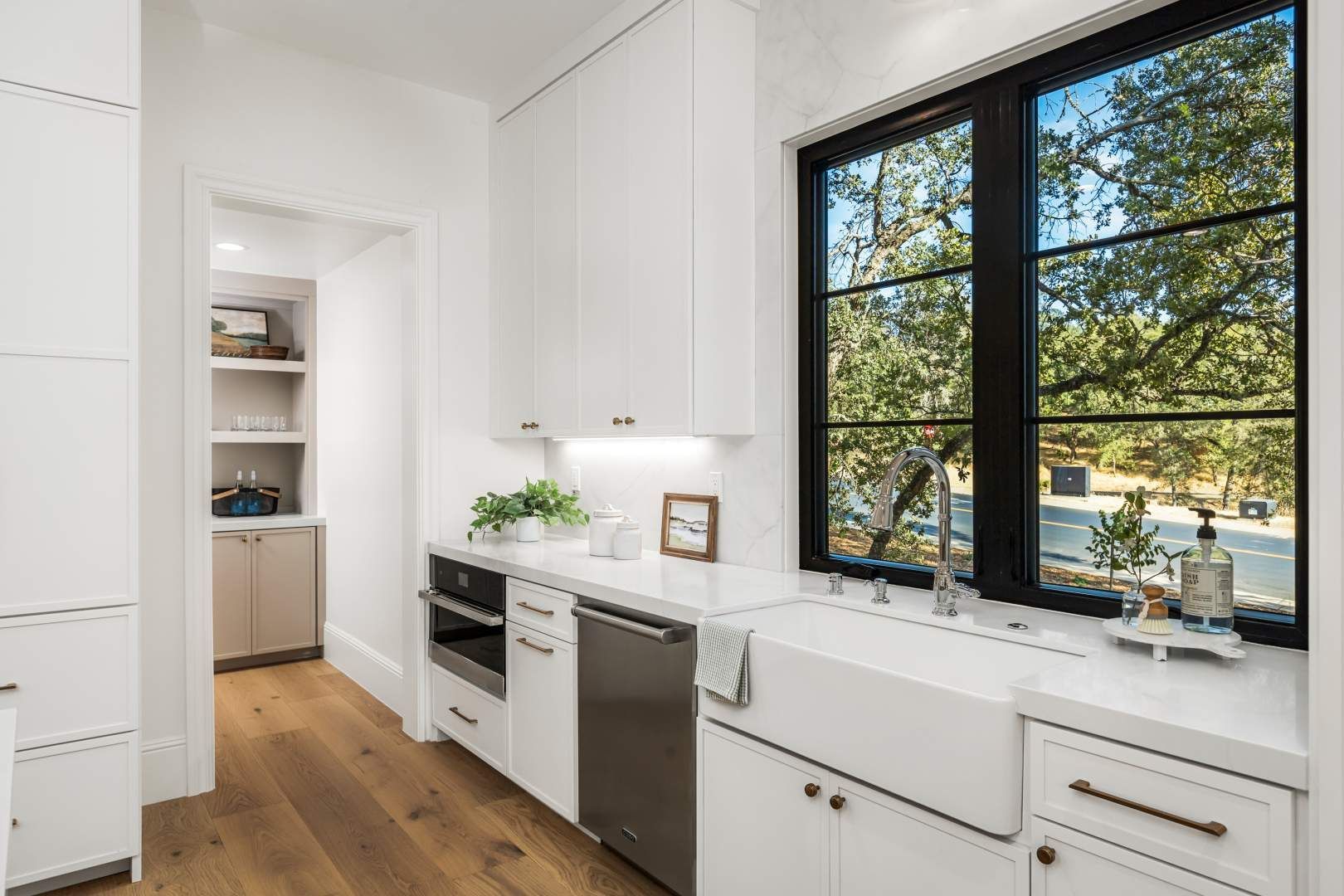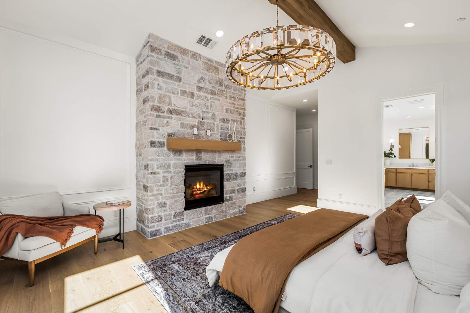Design elements include European white Oak 10 1/2” wide plank flooring, natural Halquist exterior/interior stone, designer wall treatments, designer lighting, a 9-foot iron & glass entry door, 2 fireplaces, precast mantel, quartz Bianco Calore countertops throughout the home, custom high-quality cabinetry, large Anderson windows and doors, smart alarm system/hardwired cameras, 2 surround sound systems & more! The 4-car garage with lifetime warranty epoxy floors and owned solar complete this home.