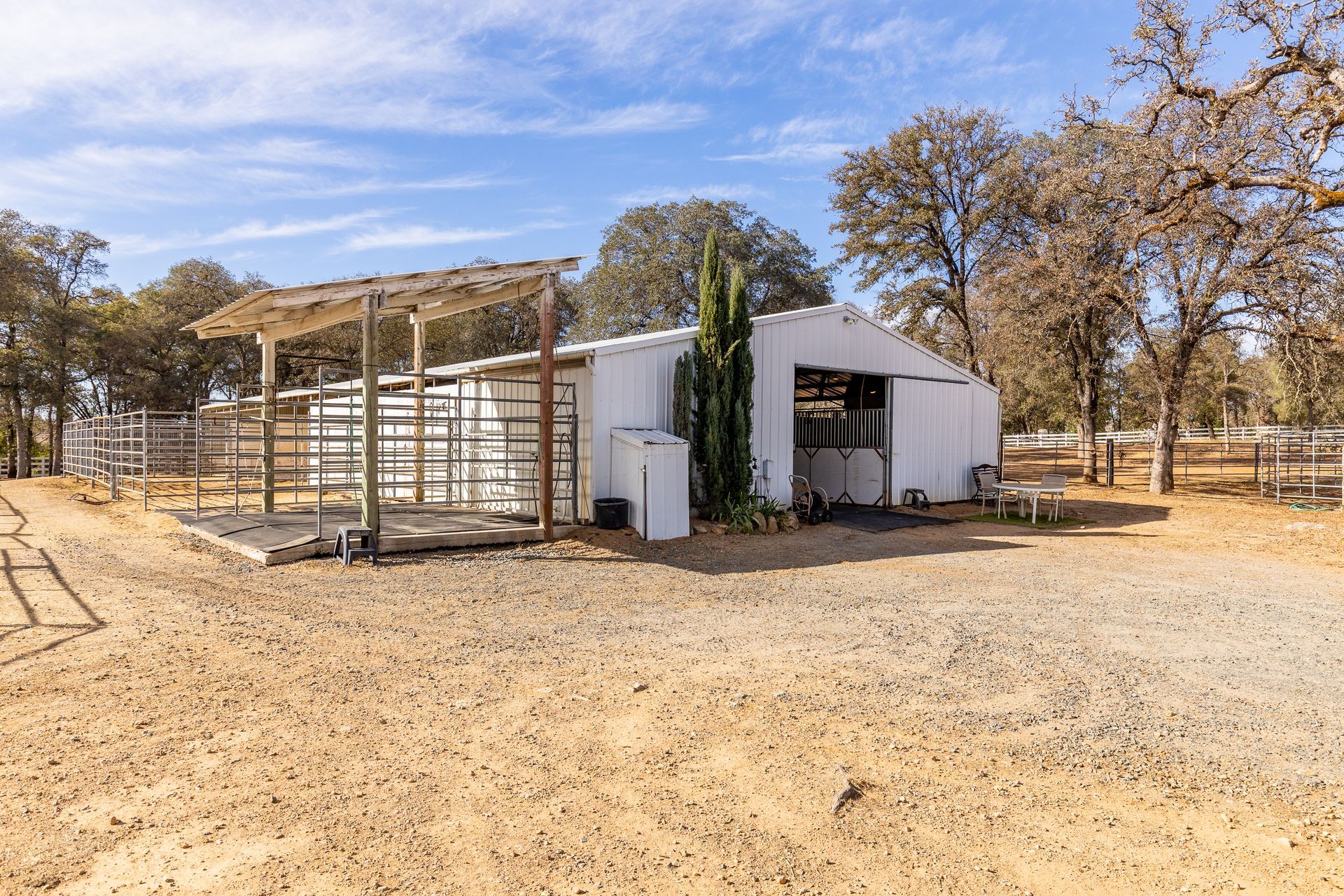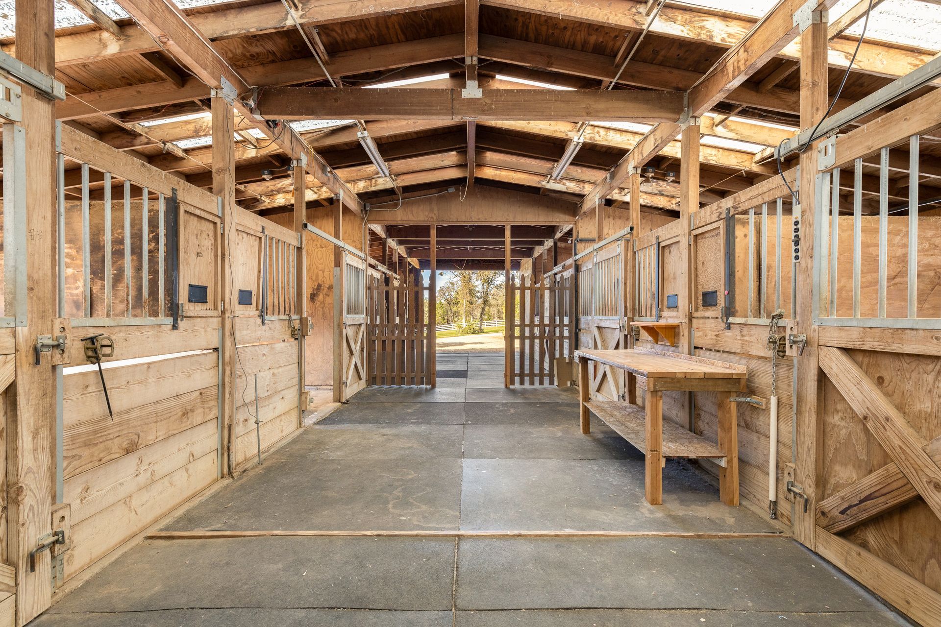 - Direct access into six stall center aisle barn