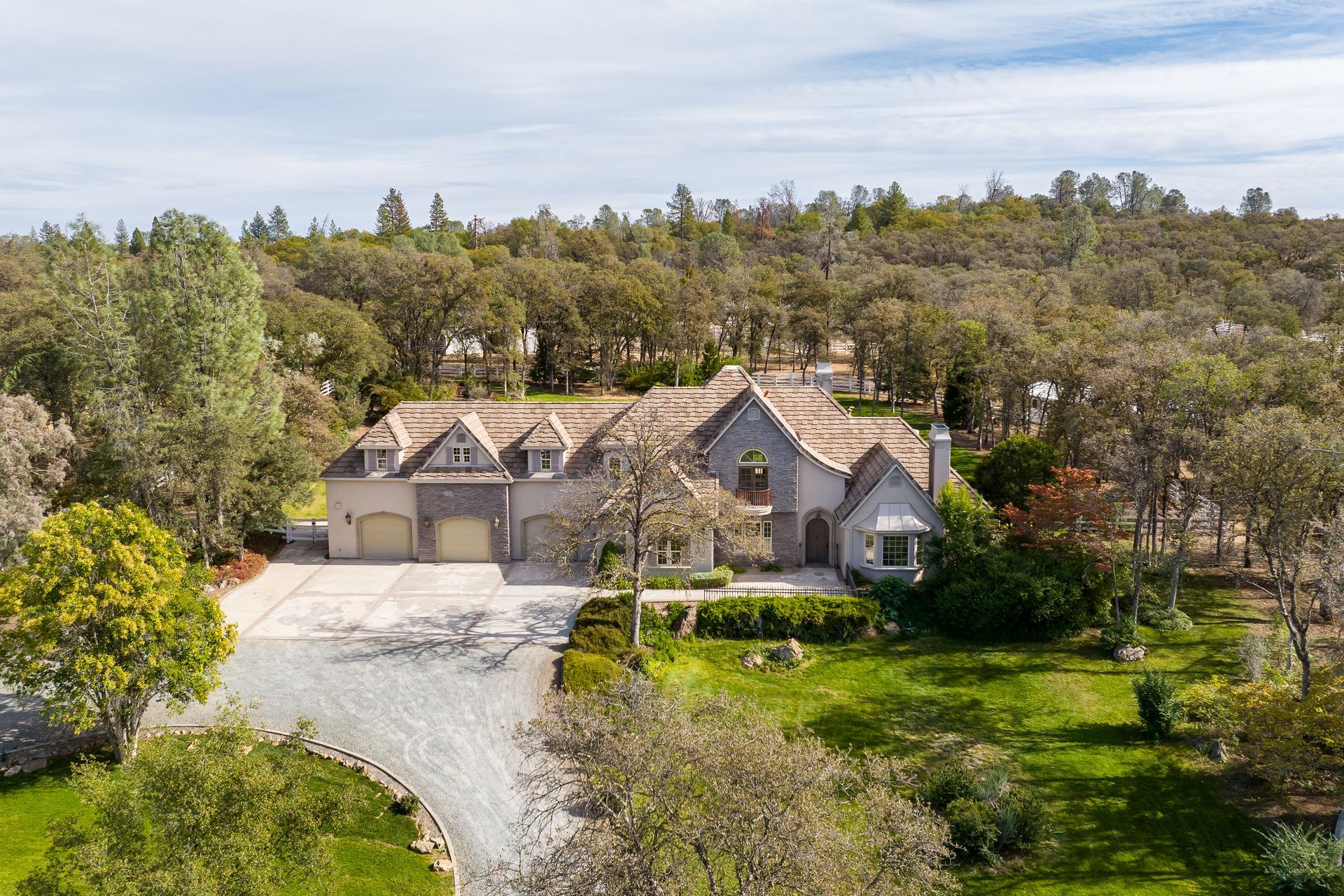 As you pull into the gated Sierra Foothill Estates community, you will pass beautiful multi-million-dollar homes as you drive to a quiet cul-de-sac, in the back of the development. Driving in through the property's gates, the French country home is majestic sitting at the top of a gentle knoll of gorgeous green lawns.