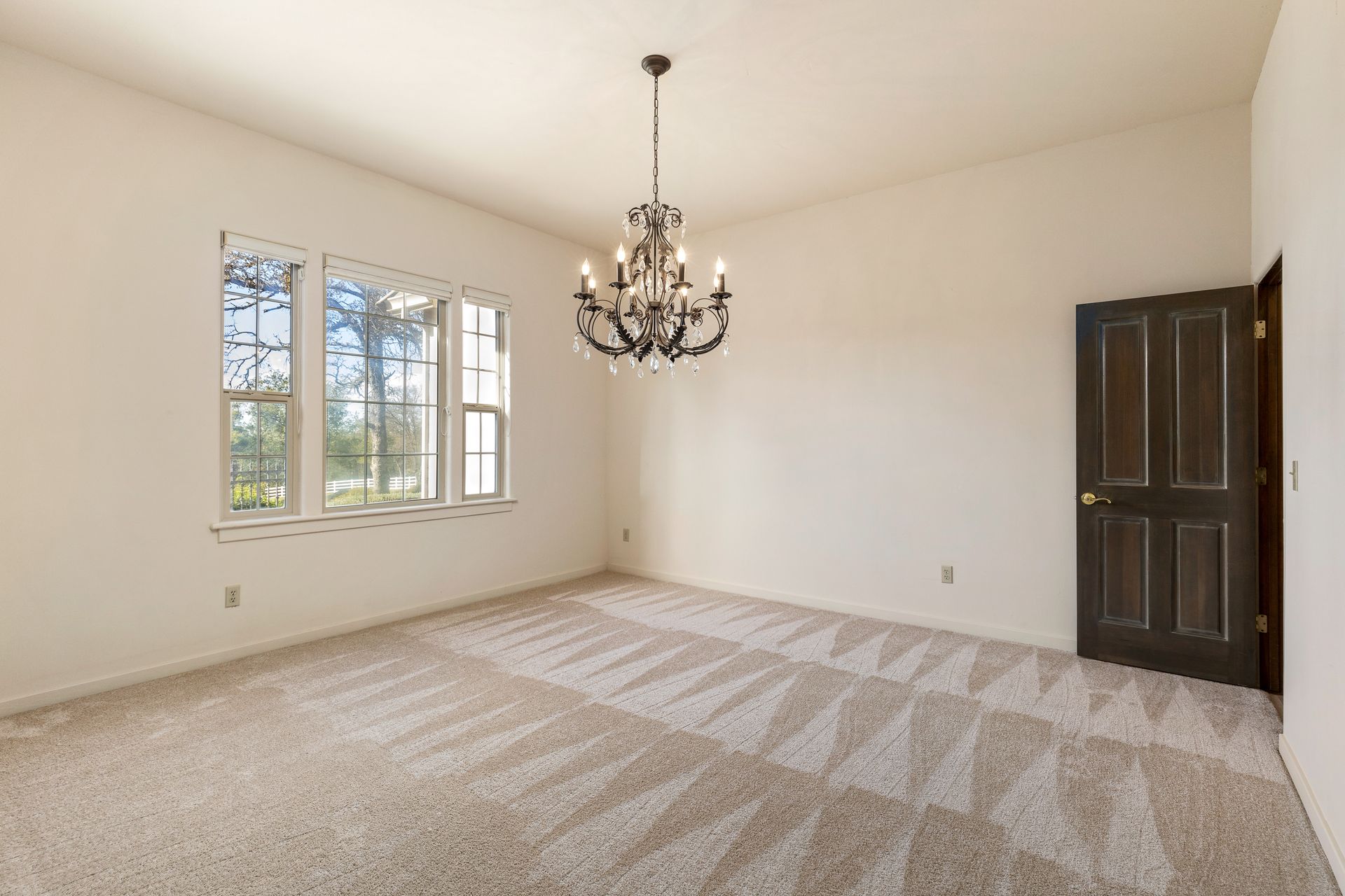 - Formal dining room with glass chandelier