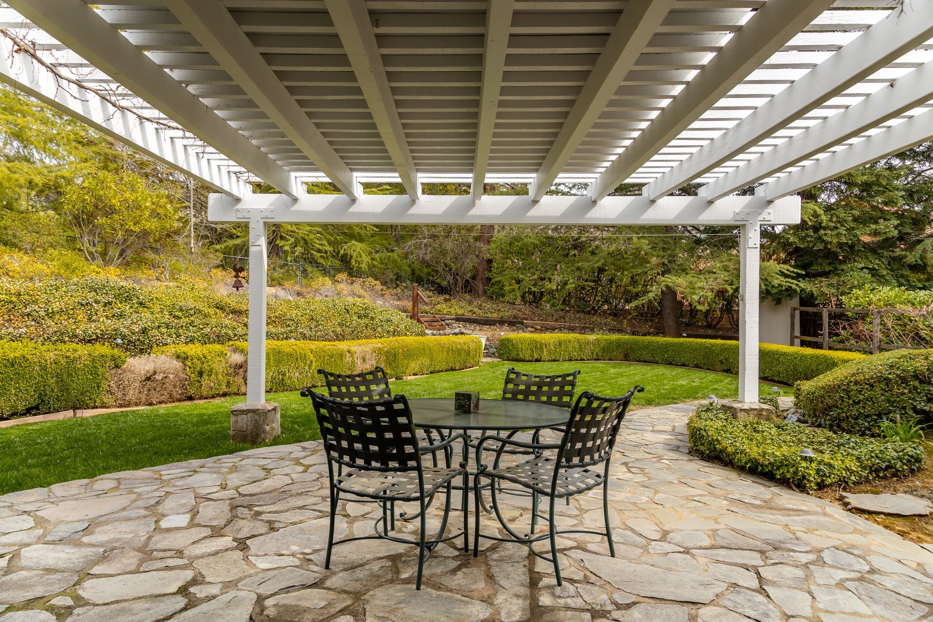 The meticulously kept grounds with extensive patios, flat lawn areas, beautiful shrubs, flowers, ivy and trees surround the home – perfect for those that love to live outside. The large built-in pool with a spa and tranquil waterfall will provide hours of relaxing enjoyment and fun for your family and guests. Behind the pool is a gazebo and a pool house with an additional storage closet and shed on the other side of the yard. The backyard is fenced and along the back of the property is a second fence, providing a strip of land for creating a bocce ball court, dog run or maintaining the shade.